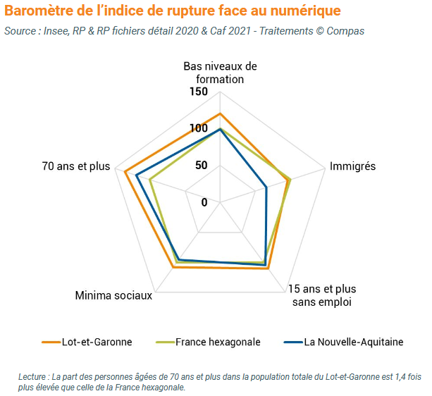 Aujourd'hui, ce sont 14 millions de français qui sont considérés comme exclus du numérique (INSEE Première, Octobre 2019). En effet, 48% des Français éprouvent au moins une forme de difficulté qui les empêche d’utiliser pleinement les outils numériques et internet (Baromètre du numérique, Crédoc, janvier 2023). De plus, en Nouvelle-Aquitaine en 2022, 850 000 personnes sont encore considérées comme illectroniques, c'est à dire qu'elles n'ont pas utilisé internet durant l'année ou ne possèdent pas les compétences numériques de base (INSEE, Janvier 2023).